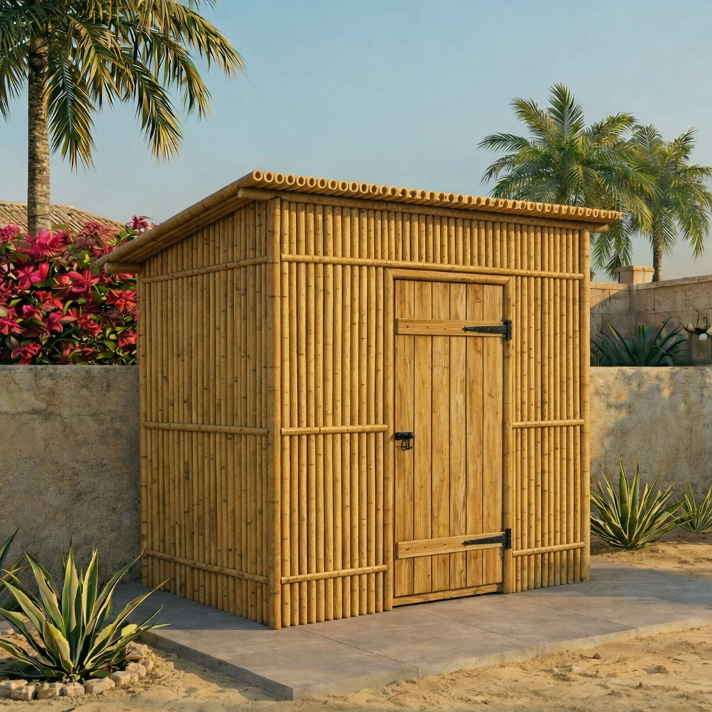 The DesertBamboo Garden Shed is a warm, natural storage solution designed to complement modern villa landscapes and desert-style gardens. With its handcrafted bamboo exterior and clean rectangular structure, it blends effortlessly into outdoor spaces while providing practical and secure storage.