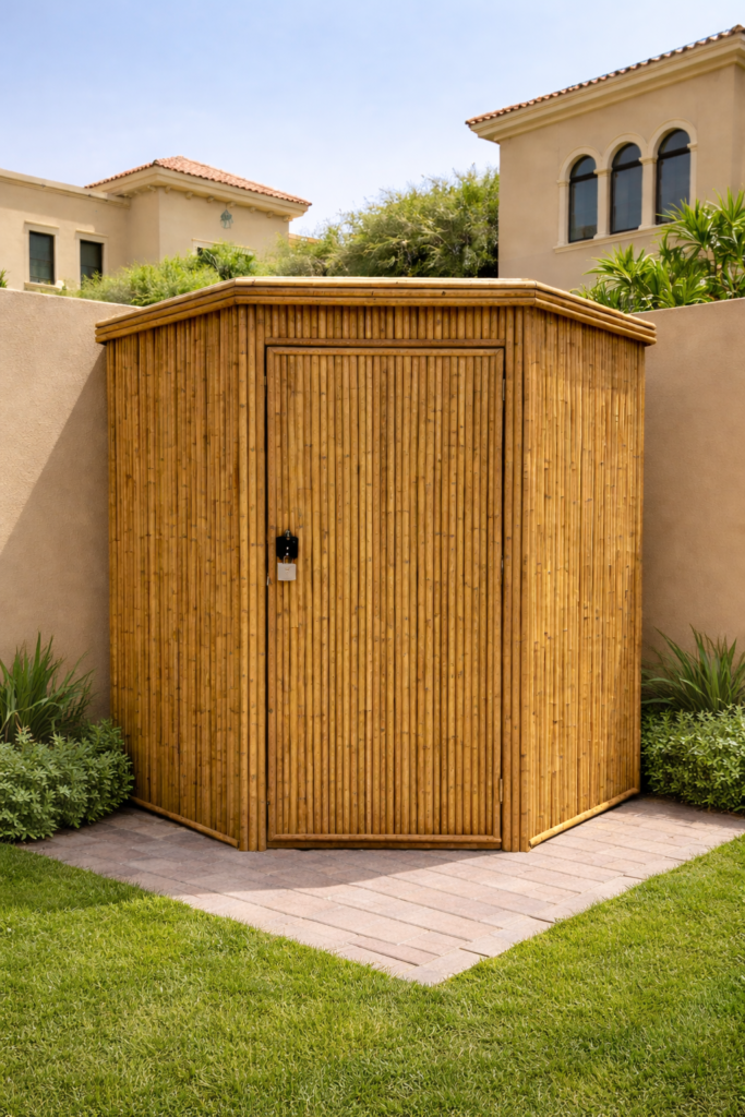 Designed for the UAE climate, the treated bamboo exterior and protective coating help withstand sun exposure and outdoor conditions. The compact yet spacious interior maximizes storage while keeping outdoor areas neat and visually appealing.